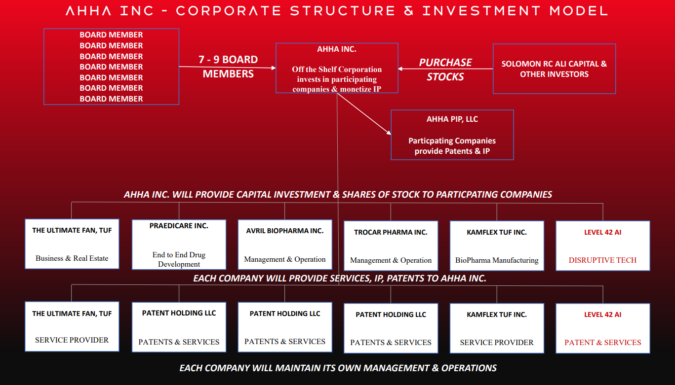 AHHA INC – CORPORATE STRUCTURE & INVESTMENT MODEL